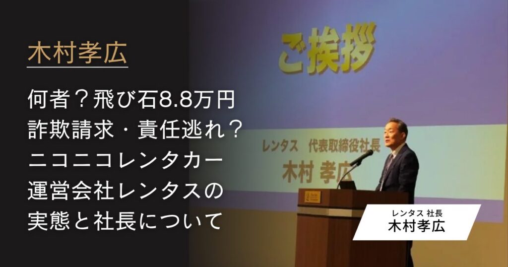 【木村孝広】何者?飛び石8.8万円詐欺請求・責任逃れ?ニコニコレンタカー運営会社レンタスの実態と社長について