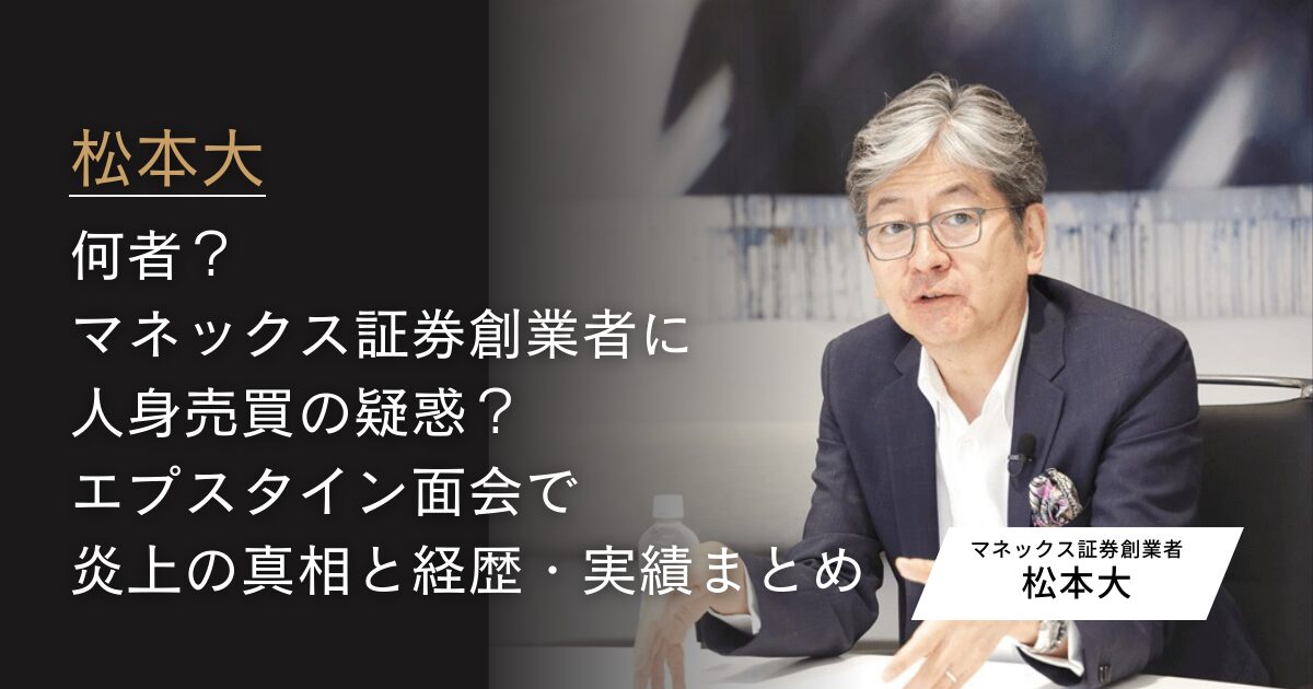 オンライン証券の先駆者として知られるマネックス創業者・松本大氏が、米富豪ジェフリー・エプスタイン氏と過去に面会していたことがSNSで拡散され、議論が広がっている。